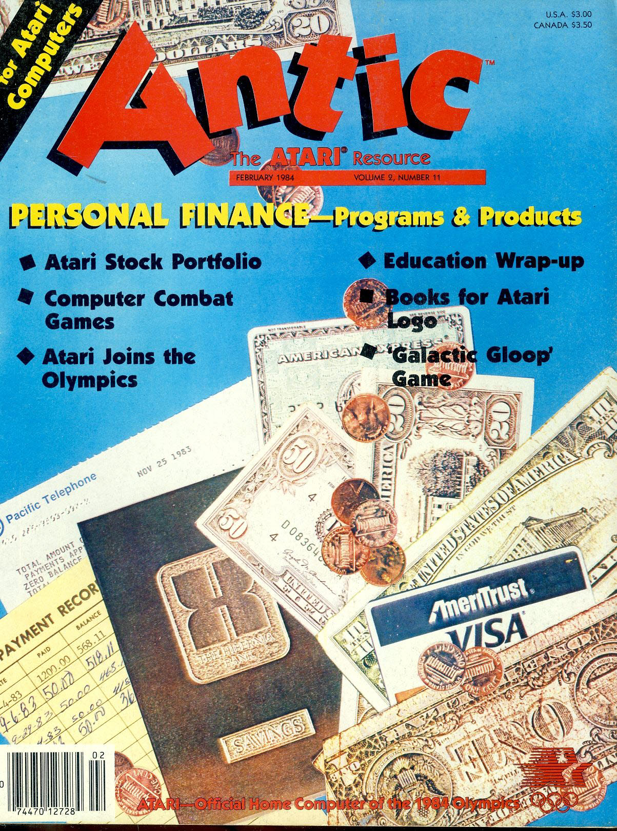 Antic ATARI magazine FEB 1984 Vol.2 #11 PERSONAL FINANCE PROGRAMS & PRODUCTS ref101166