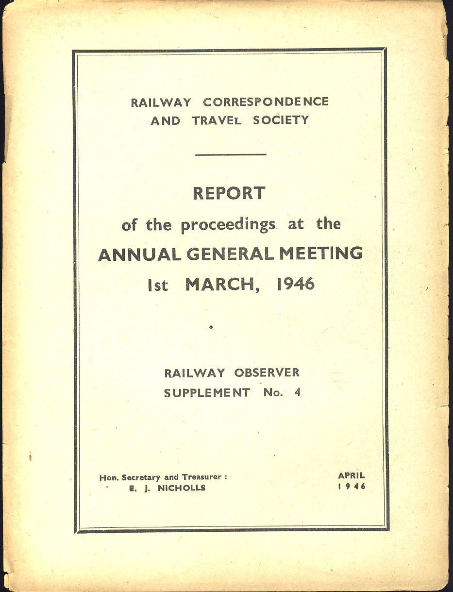 April 1946 AGM Report Railway Observer Supplement No.4 ref101589
