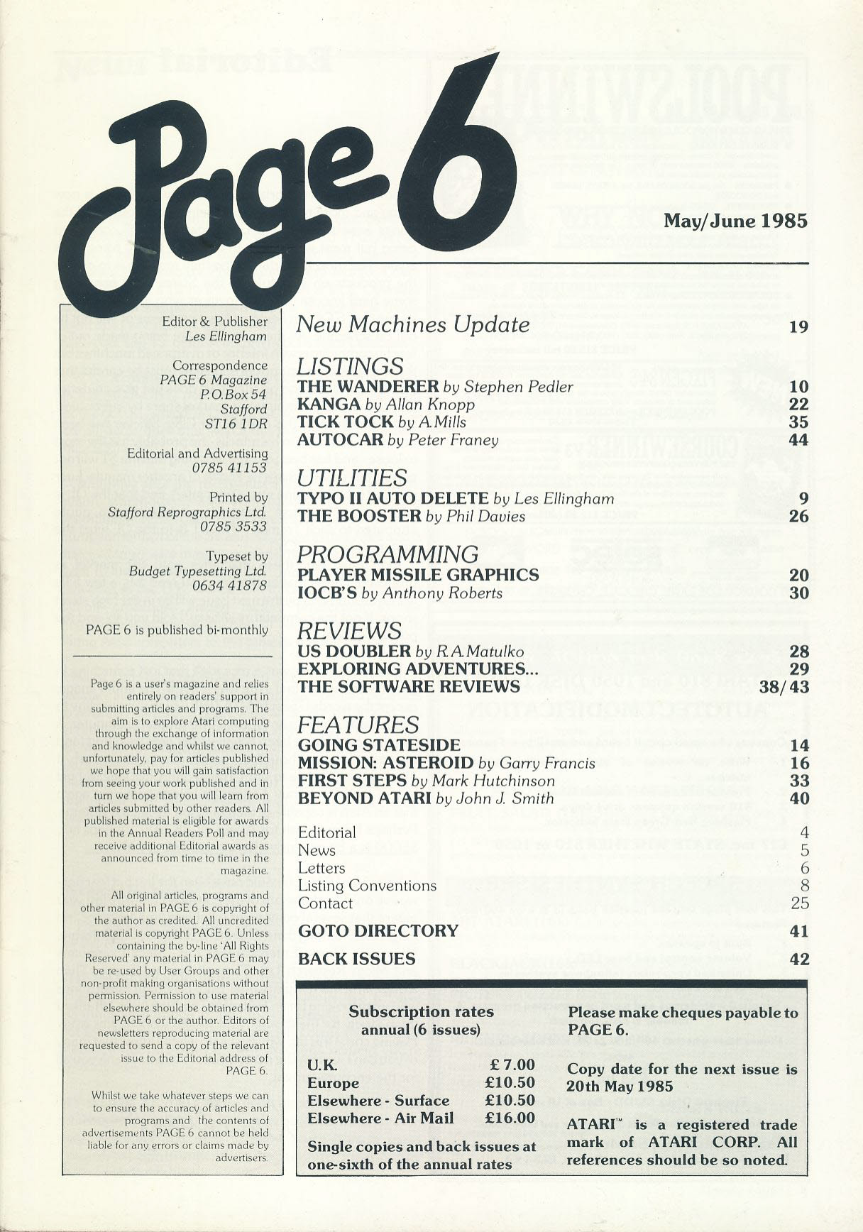 ATARI Page 6 #15 1985 computer magazine KANGA ref101152