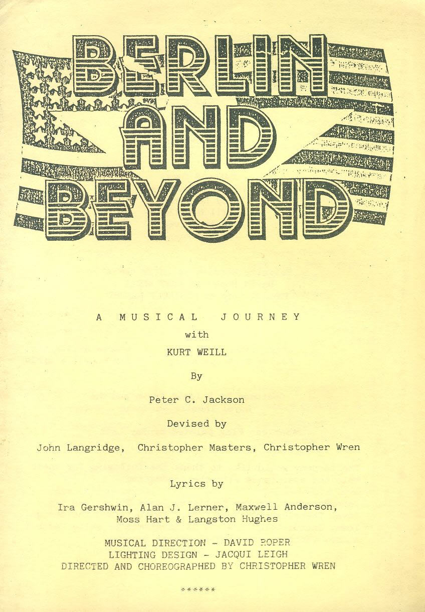 Berlin and Beyond Folded Paper Theatre Programme undated CREDIT Bridget Brown Costumes & by Royal Theatre Wardrobe refb101026 Used Programme in Very Good Condition. Measures approx 14.5cm x 21cm undated and no location