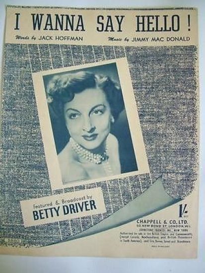 Betty Driver I Wanna Say Hello 1951 vintage sheet music Jack Hoffman J MacDonald