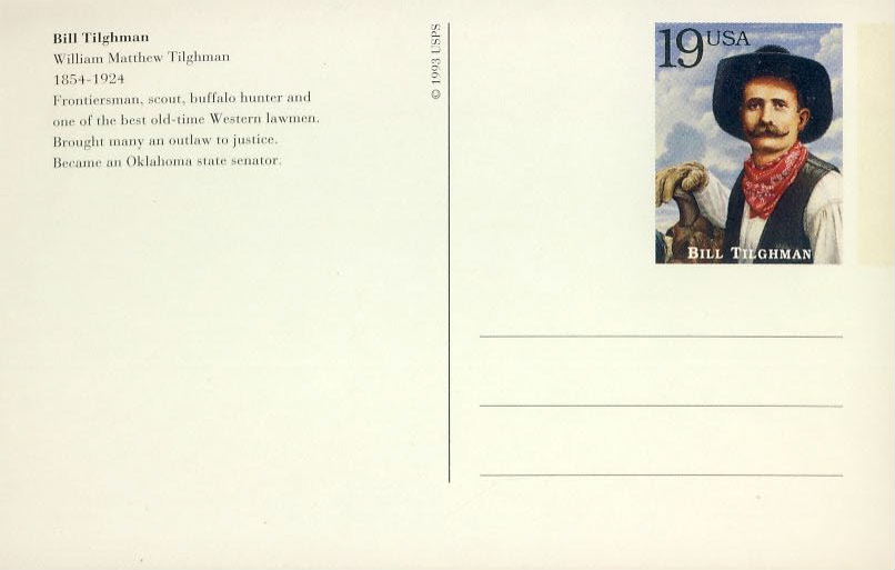Bill Tilghman frontiersman scout buffalo hunter lawman 1993 USPS Postcard refUSA P4 printed stamp