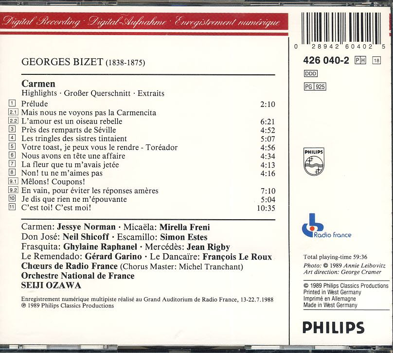 BIZET – CARMEN Hightlights (SEIJI OZAWA) Jessye Norman, Freni, Shicoff, Estes CD refm1128