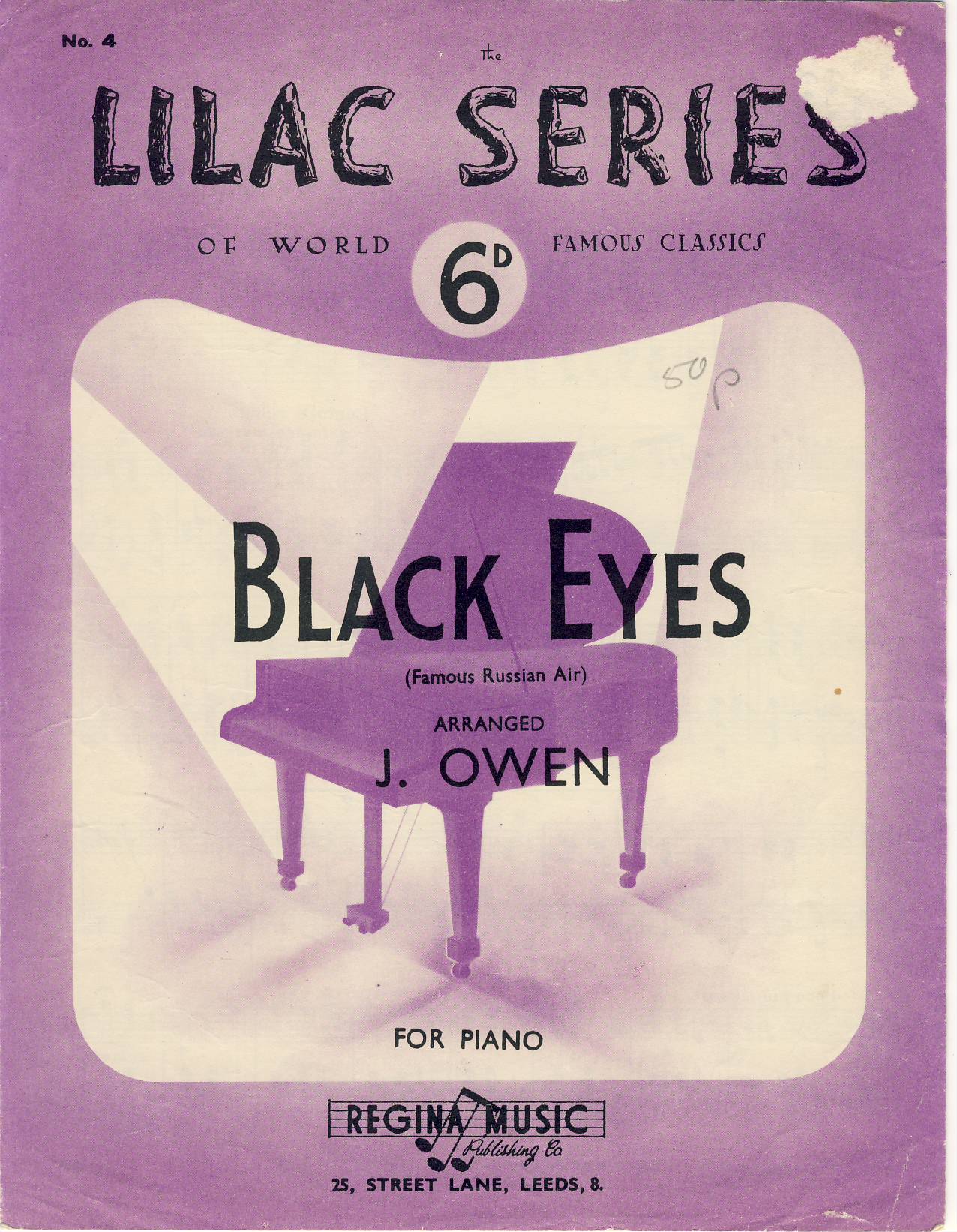 BLACK EYES Russian Folk Song JACK OWEN vintage LILAC sheet music for piano ref102837