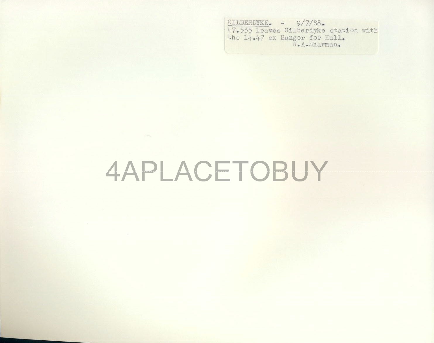 UK GB Black & White Train Photo as shown – W.A.Sharman – see reverse side picture for full details – approx measurements 25cm x 20cm (10 x 8 inches) in Very Good Condition. Photos are watermarked with a dotted line and our name (front and reverse views). These are not on the actual photographs of the train / railway / locomotive / Railway Station etc