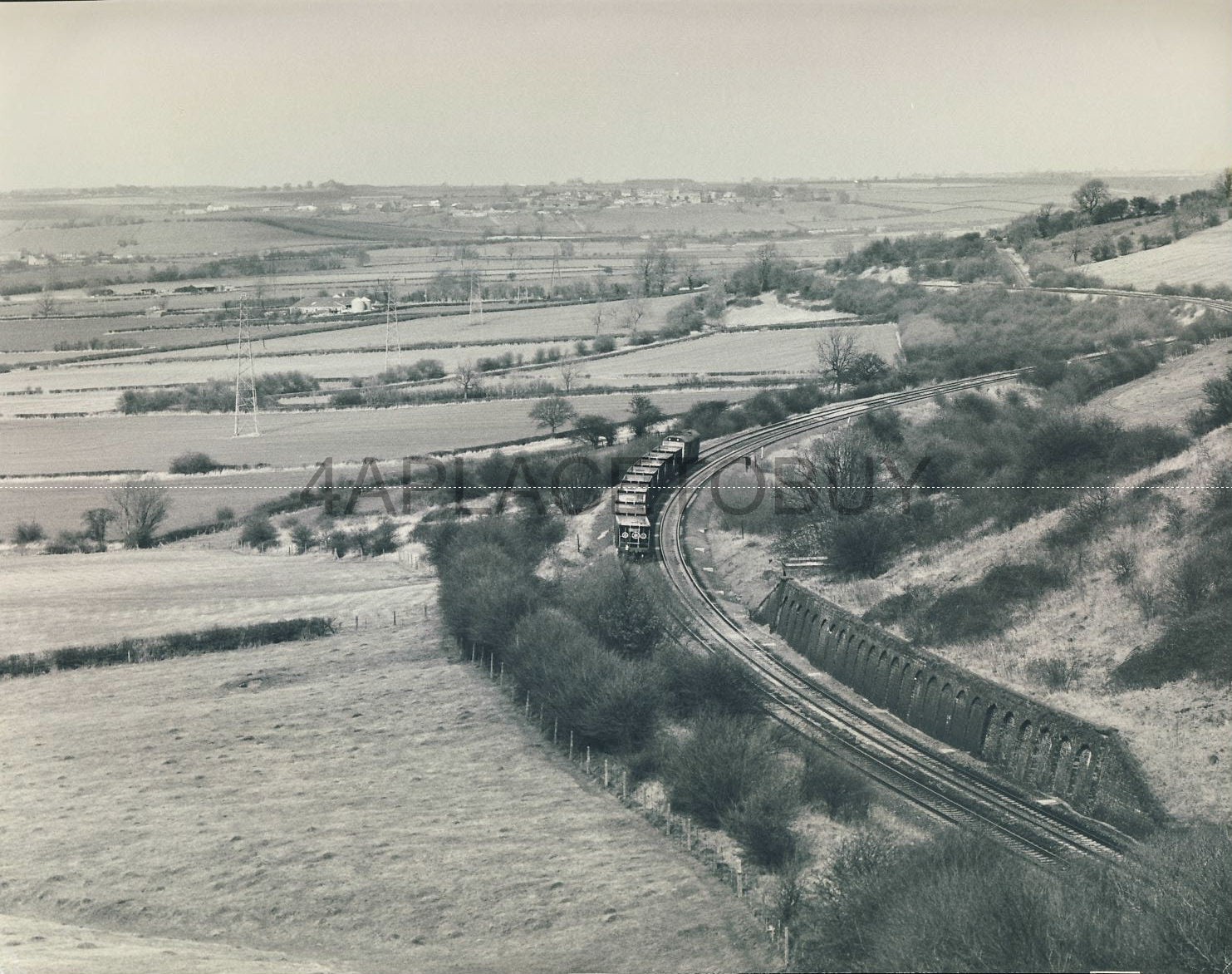 UK GB Black & White Train Photo as shown – W.A.Sharman – reverse side picture has full details – ‘CORBY TUNNEL 19.03.87 unidentified class 31 heads down to the Welland Valley with a stone train’ – approx measurements 25cm x 20cm (10 x 8 inches) in Very Good Condition. Photo watermarked with a dotted line and our name. This is not on the actual photographs of the train / railway / locomotive / Railway Station etc