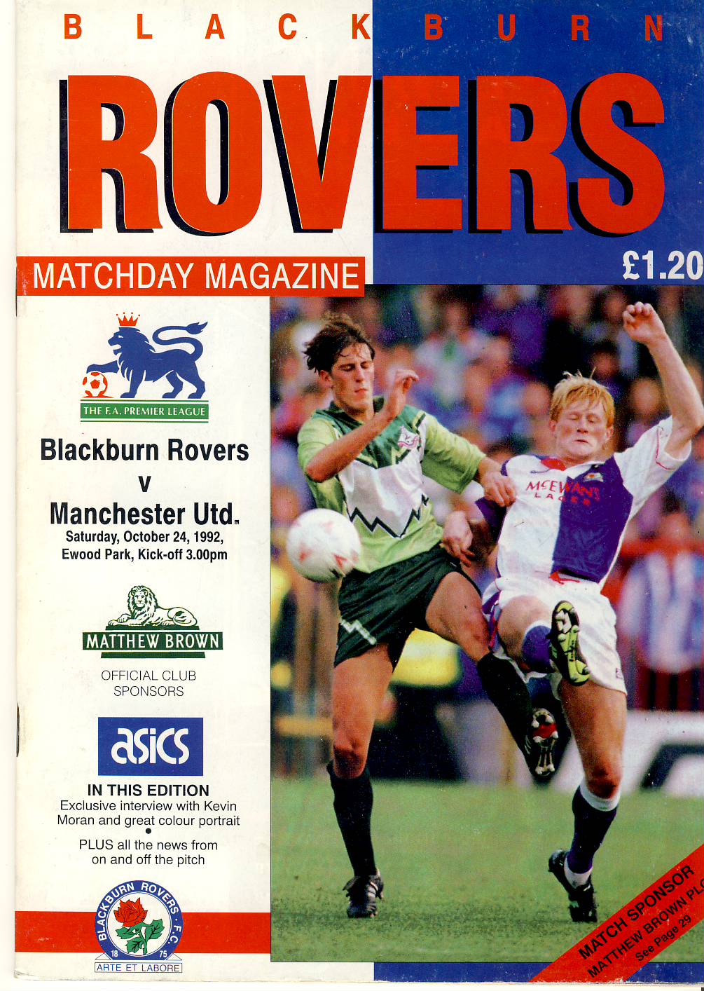 BLACKBURN ROVERS v Manchester United Oct 24th 1992 Matchday Magazine ref101807