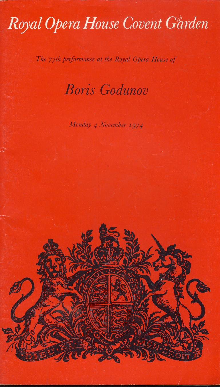 Boris Godunov Programme 4 Nov 1974 Royal Opera House Covent Garden C308
