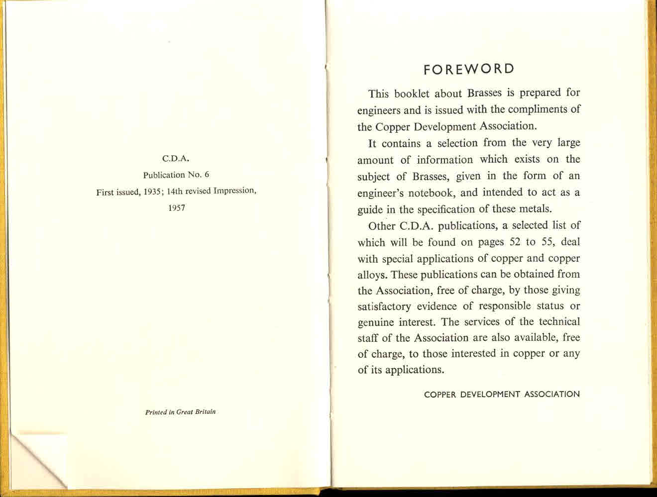 BRASSES A.C.D.A Publication 1957 copper development association booklet Hardback 55 pages ref93 (1)