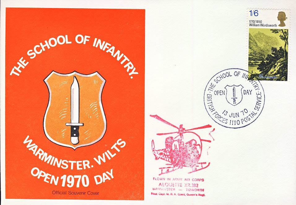 British Forces 1110 Postal Service School of Infantry WARMINSTER OPEN DAY 1970 stamp cover refD334