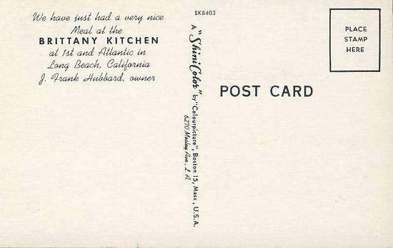 Brittany Kitchen and Mexicali Long Beach California VINTAGE POSTCARD b3 JF HUBBARD