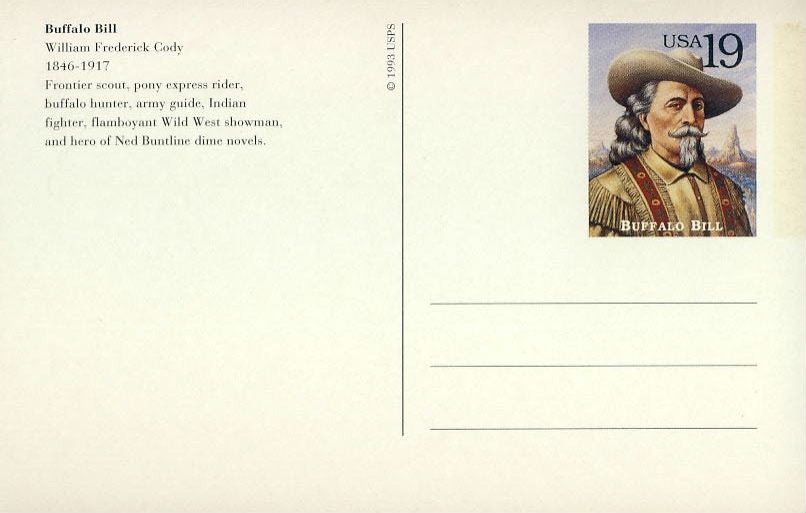 Buffalo Bill Wm. F. Cody 1846-1917 Frontier scout 1993 USPS Postcard refUSA P4 printed stamp
