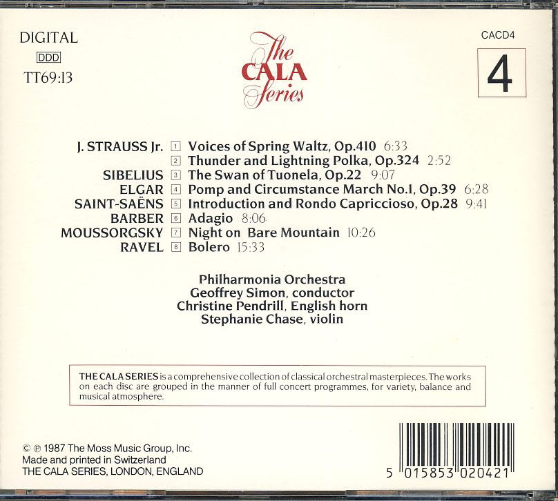 Cala Series Vol. 4 Strauss Jr, Sibelius, Saint-Saëns, Elgar, Barber, Moussorgsky and Ravel CACD4 refm1107