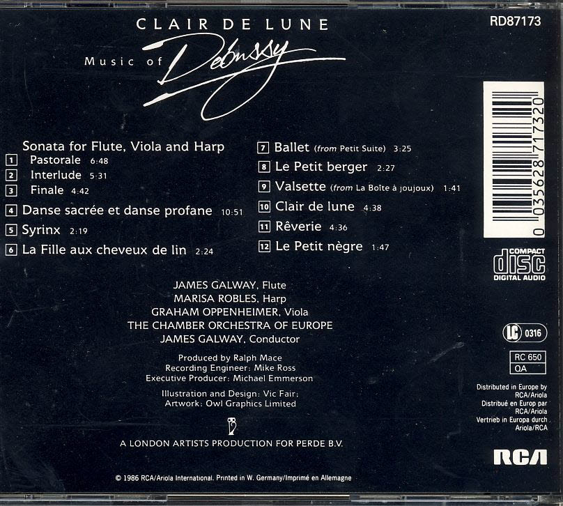 Clair De Lune DEBUSSY James Galway, Marisa Robles Music CD RD87173refm10
