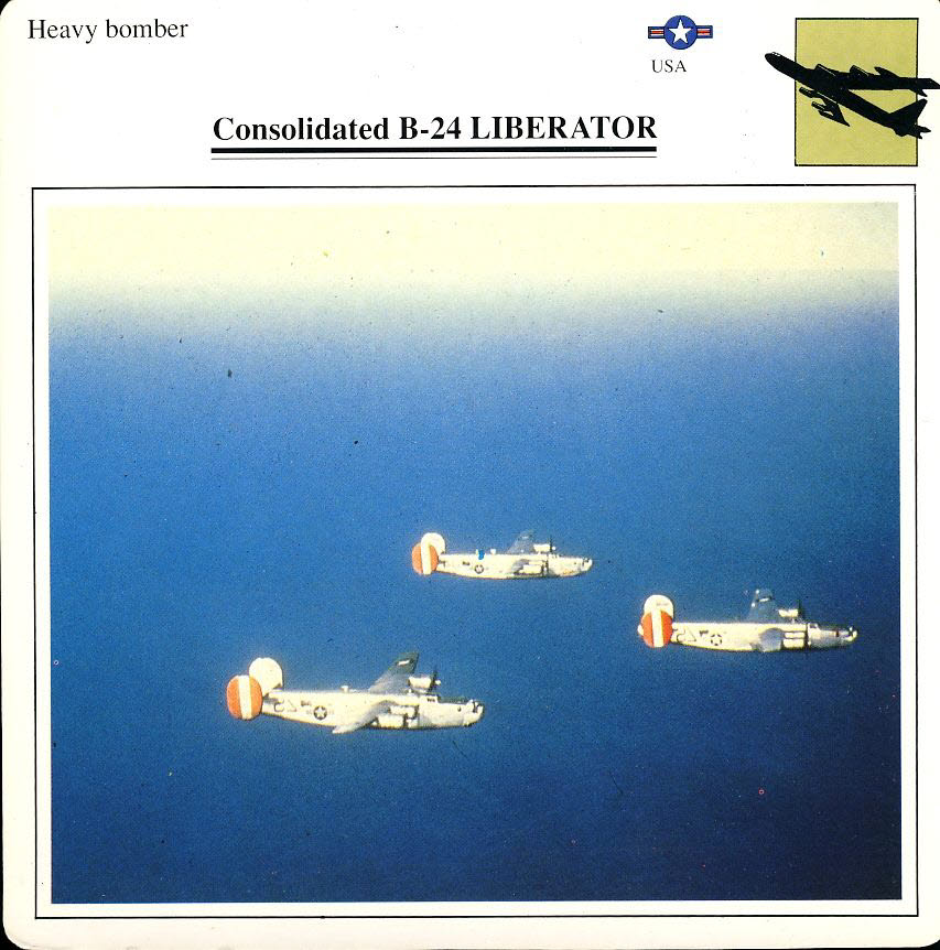 Consolidated B-24 LIBERATOR heavy bomber USA Military Aircraft Collectors Card refP6