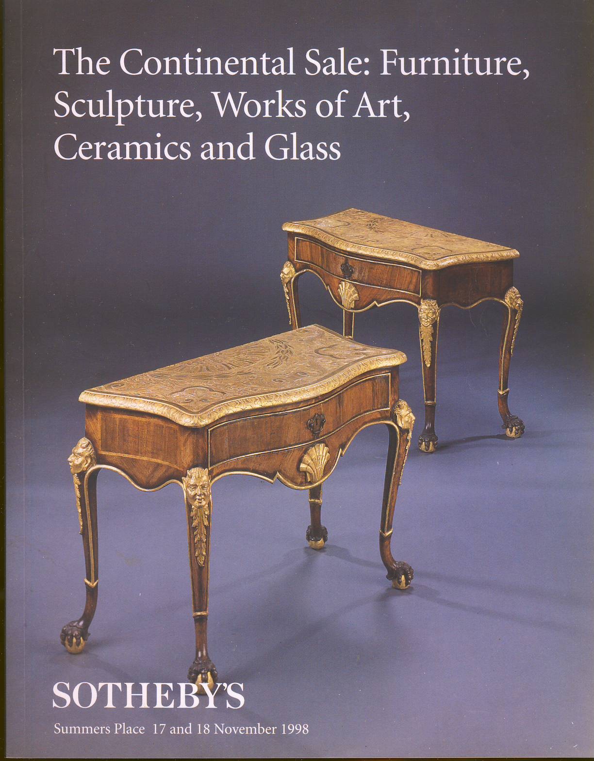 SOTHERBYS 1998 Continental Sale:Furniture Sculpture Art Ceramincs and Glass Auction Catalogue This is a used catalogue and may have some some marks and page creases. ref1-4
