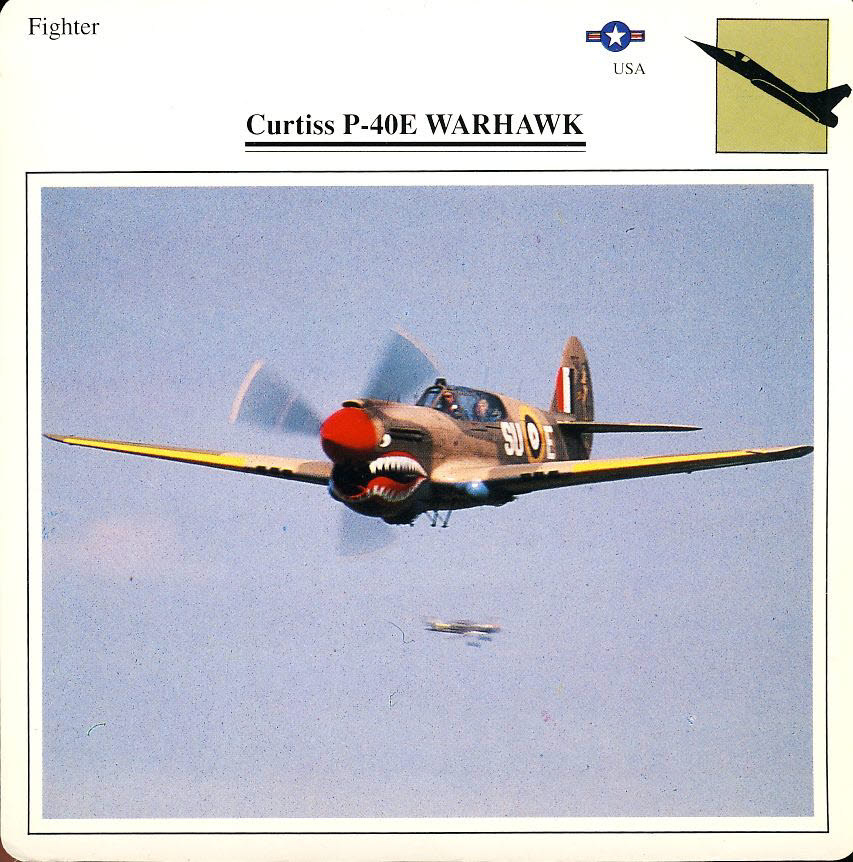 Curtiss P-40E WARHAWK Fighter USA Military Aircraft Collectors Card refP6