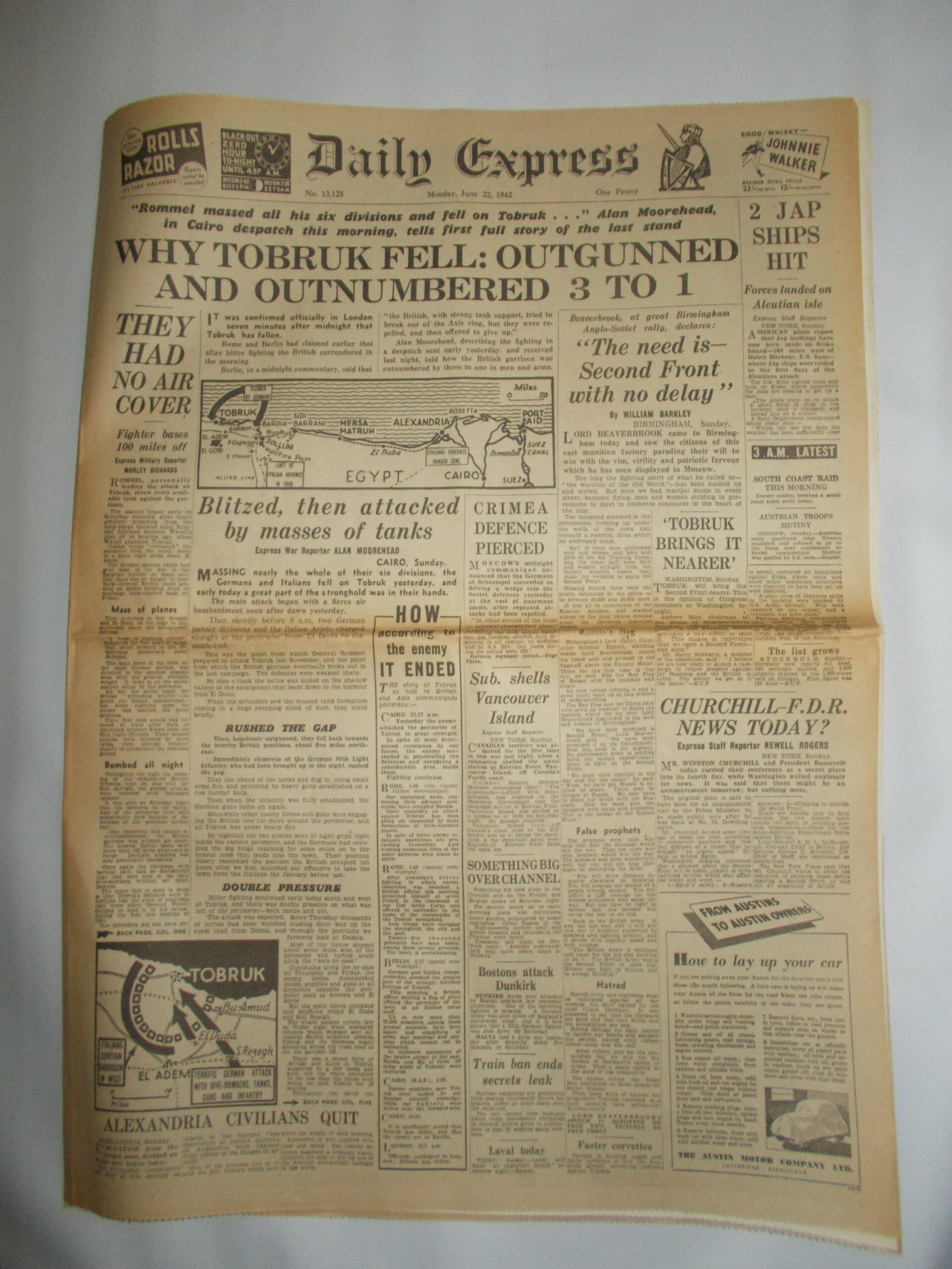 Daily Express June 22nd 1942 4 page reproduction newspaper with poster – history teaching research projects materials RefS4 This is a pre-owned paper in good condition. Ideal for projects and research. Please see full description and photo.