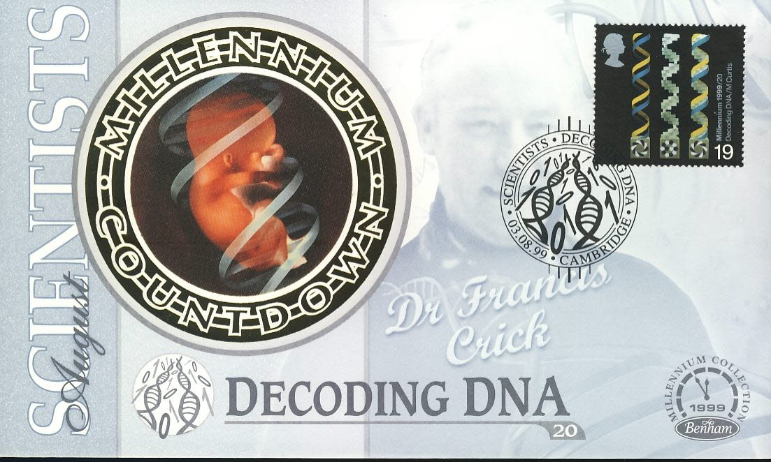 DECODING DNA Scientists DR FRANCIS CRICK Cambridge 3rd Aug 1999 LTD ED stamp cover refE86 Benham Millennium Collection Limited Edition Cover