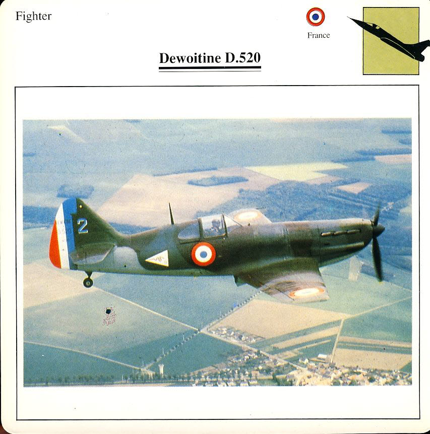 Dewoitine D.520 Fighter France Military Aircraft Collectors Card refP6