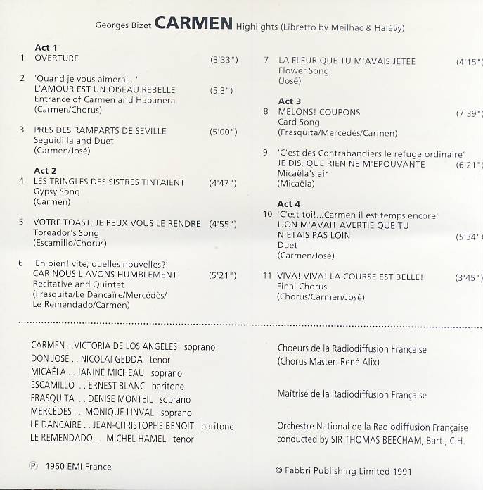 Discovering OPERA no.1 Highlights CARMEN Bizet FABBRI music CD r155