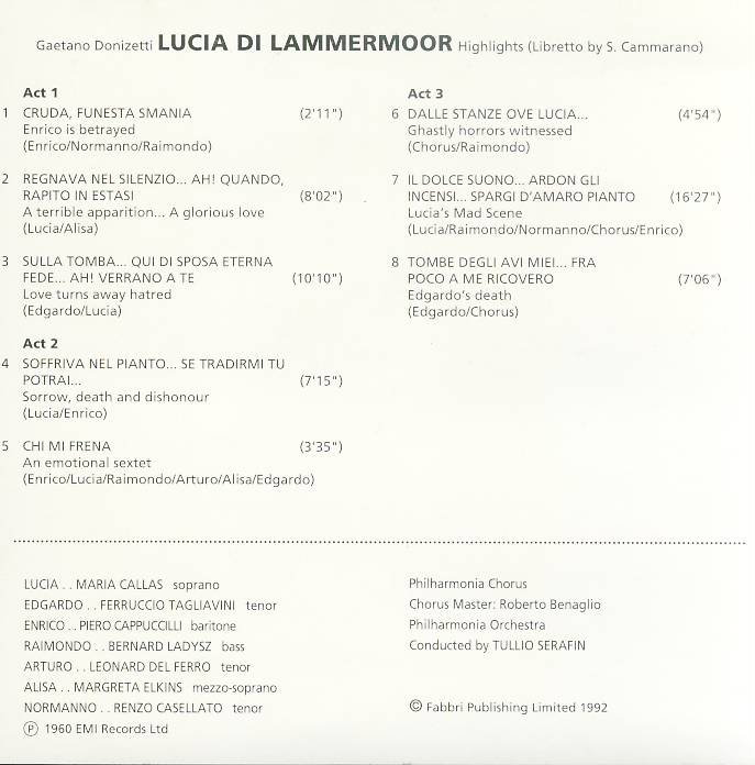 Discovering OPERA no.10 Highlights Lucia di Lammermoor FABBRI music CD r144