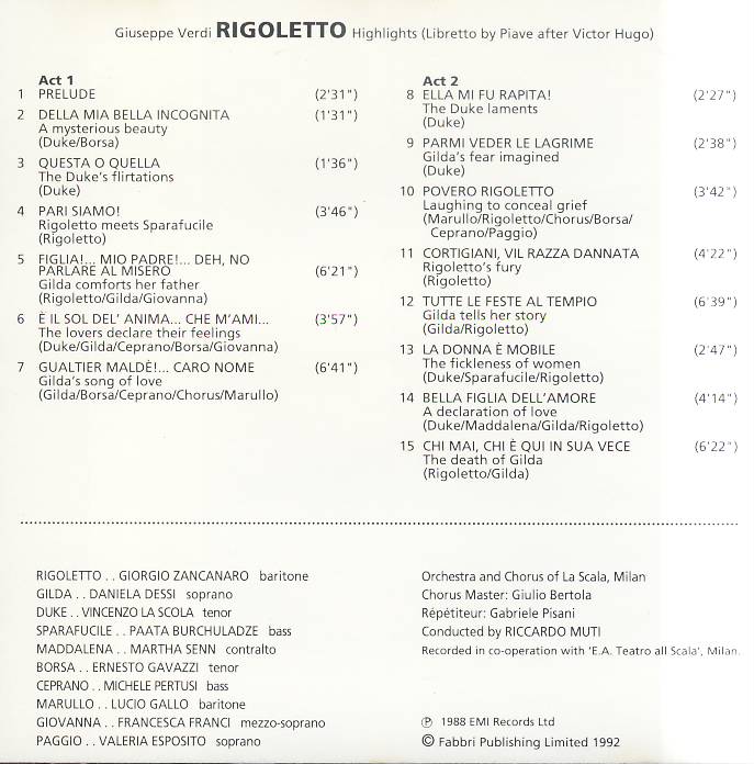 Discovering OPERA no.12 Highlights Rigoletto FABBRI music CD r145