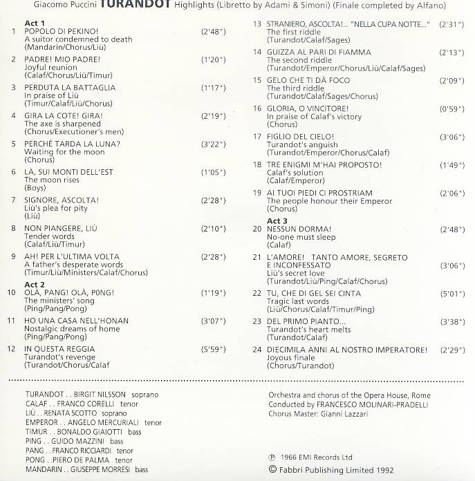 Discovering OPERA no.18 Highlights TURANDOT Puccini FABBRI music CD r157
