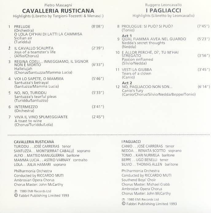 Discovering OPERA no20. Highlights CAVALLERIA RUSTICANA & I PAGLIACCI FABBRI music CD r160