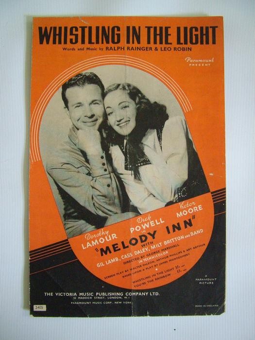Dorothy Lamour andCass Daley Whistling in the Light 1943 sheetmusic Melody Inn