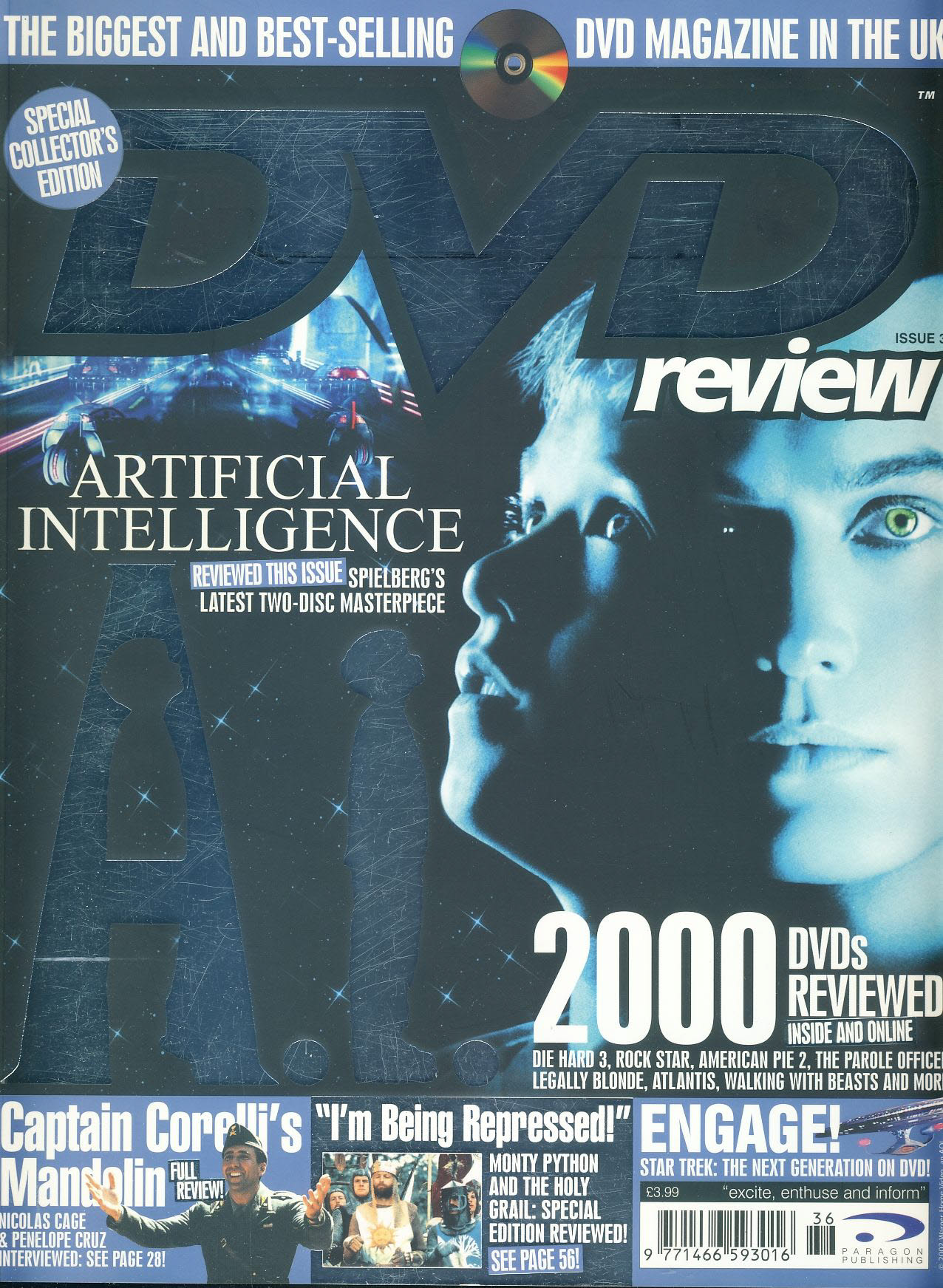DVD review magazine #36 ARTIFICIAL INTELLIGENCE ref100998 Pre-owned in very good condition. Magazine ONLY, no extras, freebies, posters, supplements etc. Please see larger photo and full description for details.