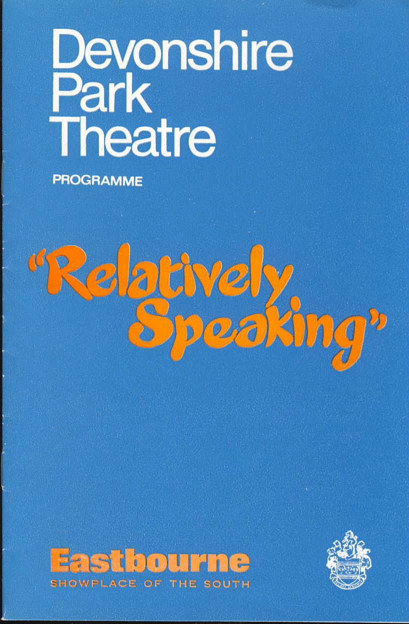 EASTBOURNE Devonshire Park Theatre Programme 1978 RELATIVELY SPEAKING Mollie Sugden. Good used clean condition. This vintage Theatre programme measures approx 13.5cm x 21cm. Please read full description and see large photo. C469