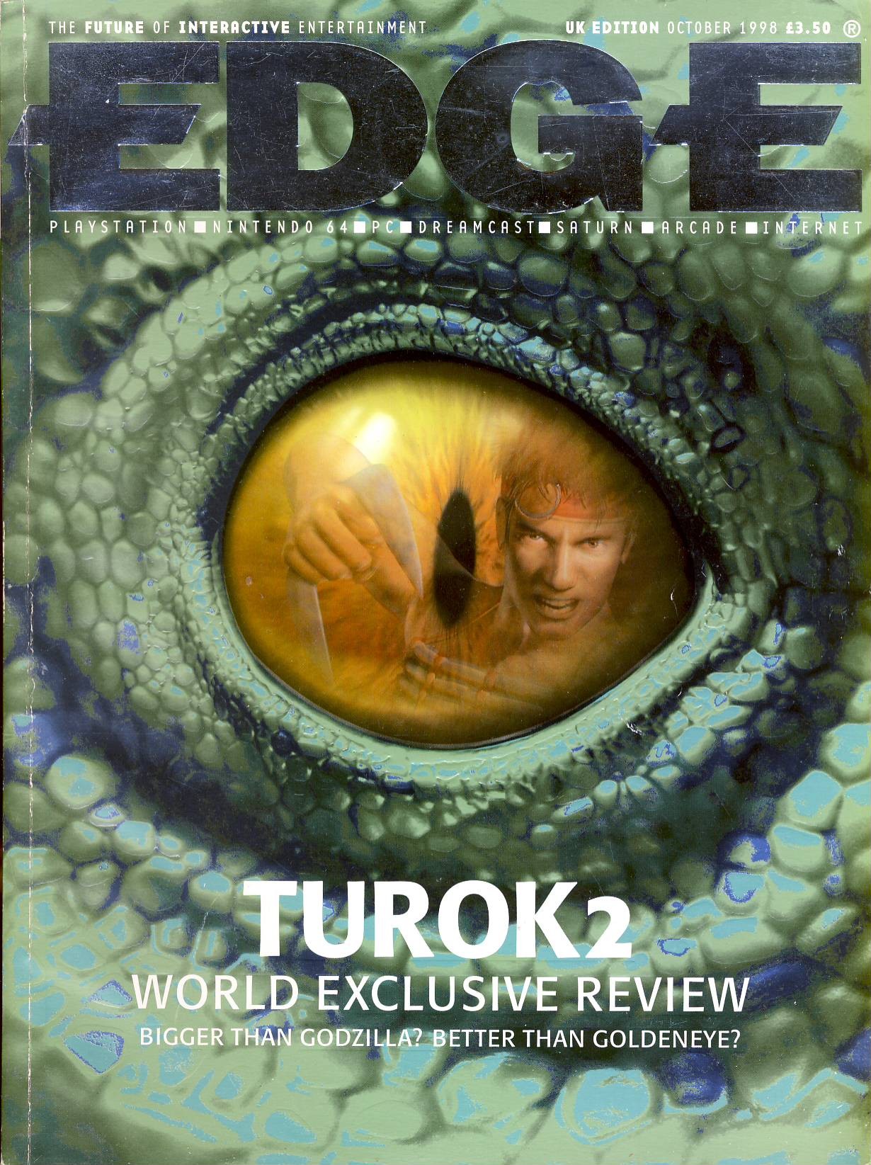 EDGE magazine TUROK 2 World Exclusive Review OCT 1998 – Billed as ‘The Future of Interactive Entertainment’ r1-21Very Good Used Condition. This magazine has been read and may have some light page turn creases and scuffs to cover. See large photo for details.Condition ReportPlease see full description and photo for condition report. Feel free to ask any questions. Thank you.ReferenceEDGE magazine TUROK 2 World Exclusive Review OCT 1998 r1-21
