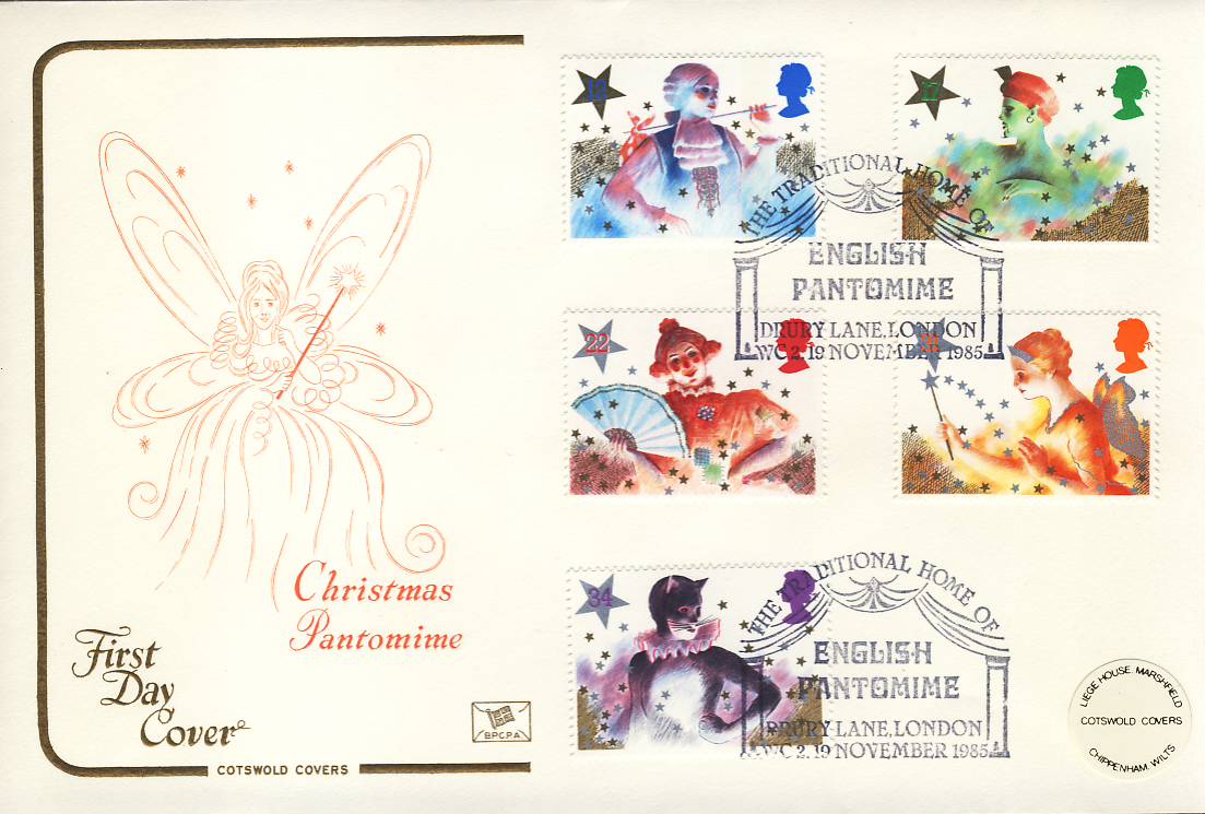 ENGLISH PANTOMIME DRURY LANE 1985 FDC Cotswold Stamp Cover refG142 VGC unsealed, with insert card.