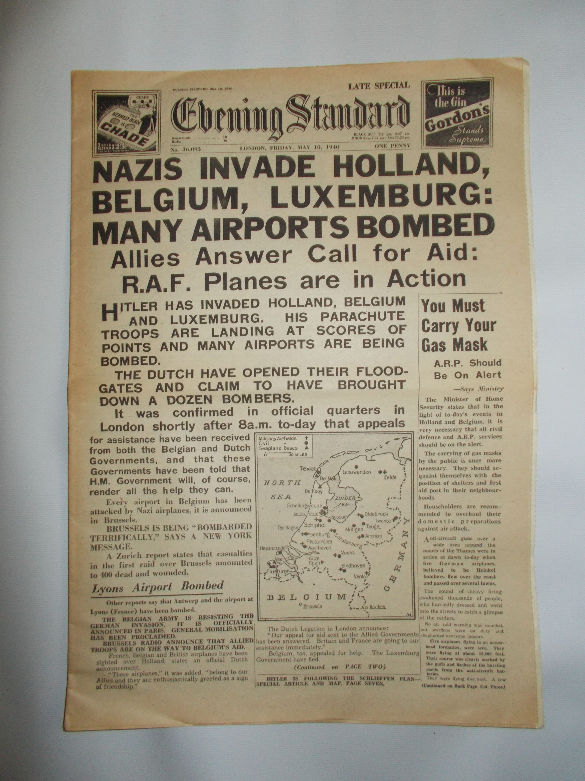 Evening Standard May 10th 1940 8 page reproduction newspaper history teaching research projects materials RefS4