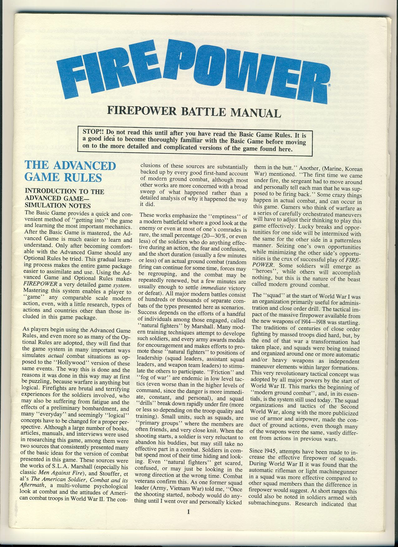 FIREPOWER Battle Manual 48 pages plus Basic game rules 4 pages ref100094 Ideal for additional / replacement in exisiting board game. RULES ONLY no game parts or boards, no extras, freebies, posters, supplements etc. Please see larger photo and full description for details.