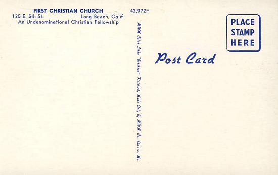 First Christian Church Long Beach California VINTAGE POSTCARD box3
