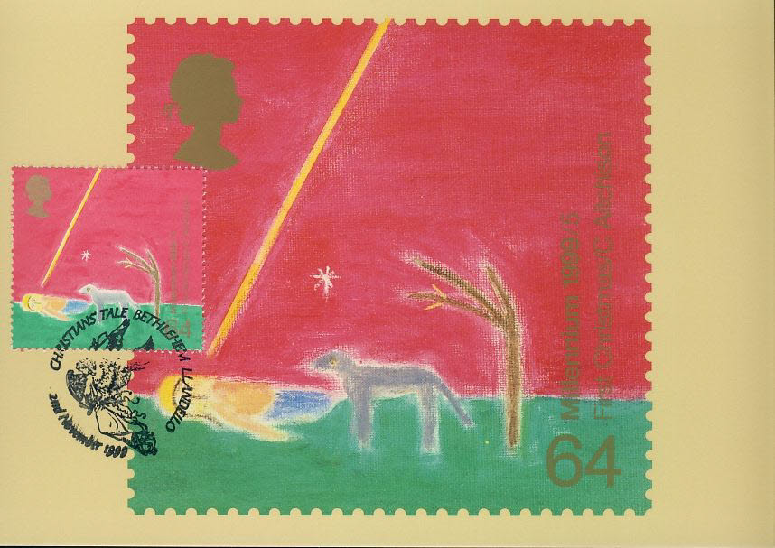 First Christmas BETHLEHEM Christians Tale Postcard special hand stamp postmark 1999 refE97 Special Hand Stamped Postcard in Very Good Condition – address label on reverse.