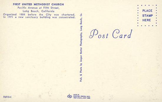 First United Methodist Church Long Beach CALIFORNIA 1970s VINTAGE POSTCARD box3