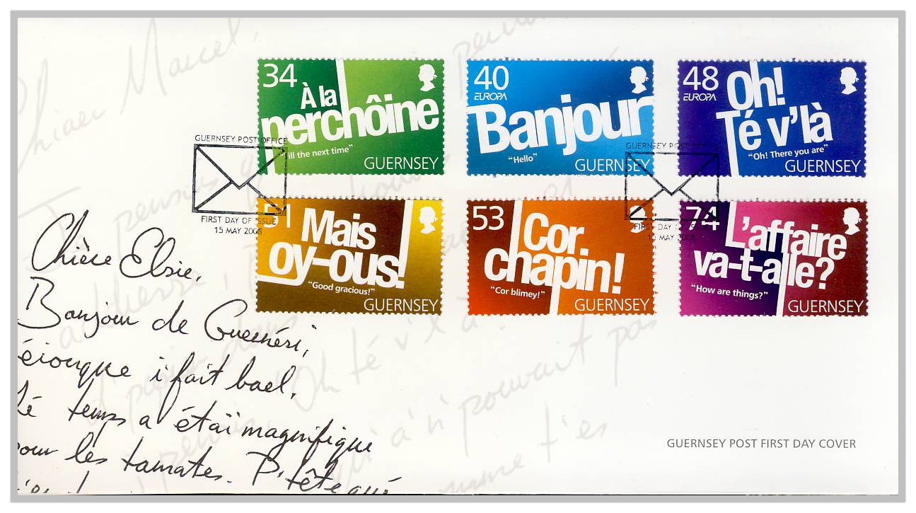 2008 Europa Letter Guernsey Post FDC languages stamps first day cover. Very Good condition with insert card. Please see larger photo for details.