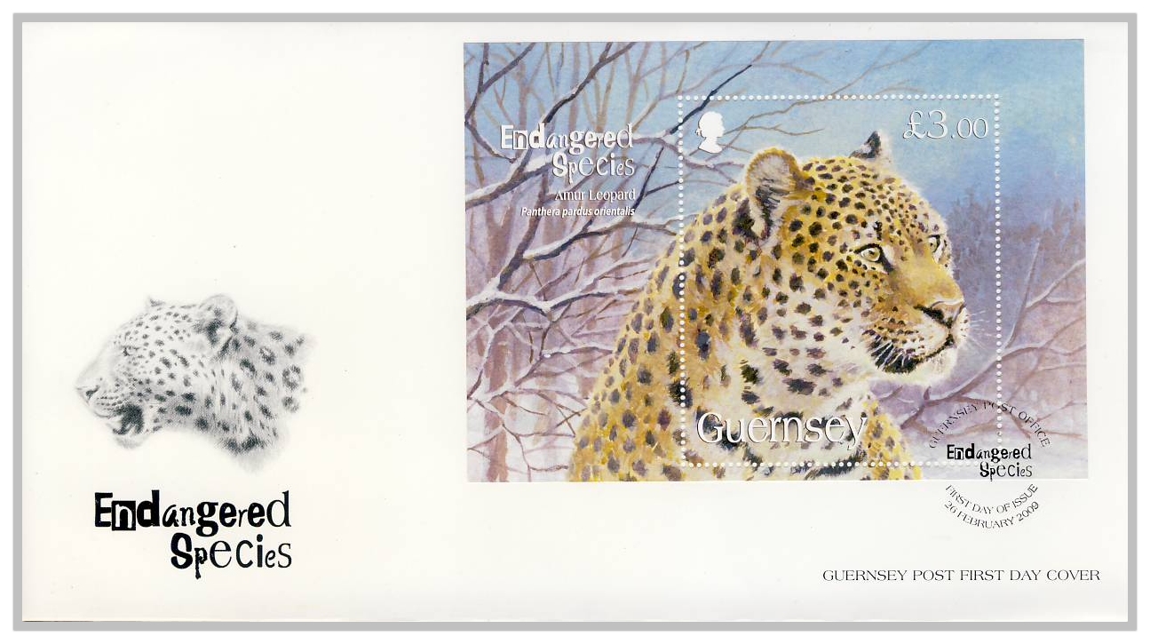 2009 Endangered Species Amur Leopard Guernsey Post FDC Minisheet stamp first day cover. Very Good condition with insert card. Please see larger photo for details.