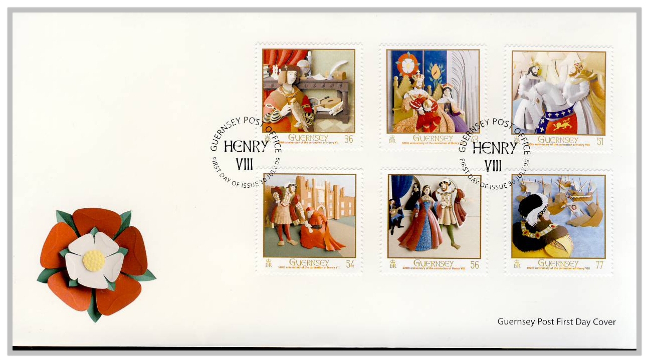 FO1029 2009 Coronation of Henry VIII Stamps Guernsey Post Office fdi FDC