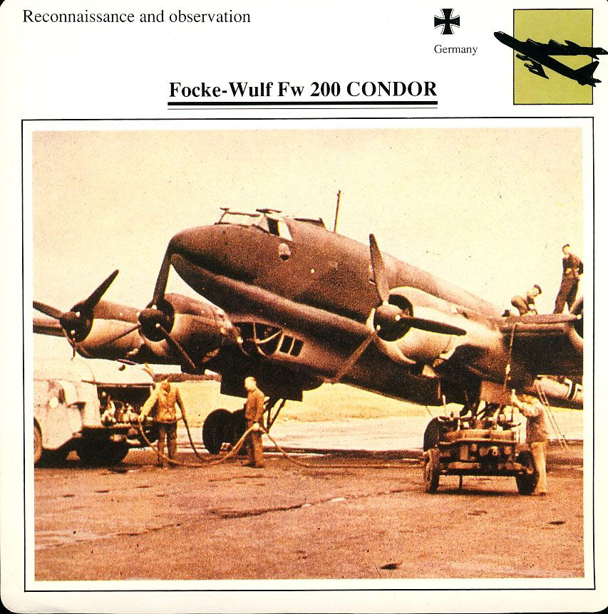 Focke-Wulf Fw 200 CONDOR Reconnaissance and observation Germany Military Aircraft Collectors Card refP6