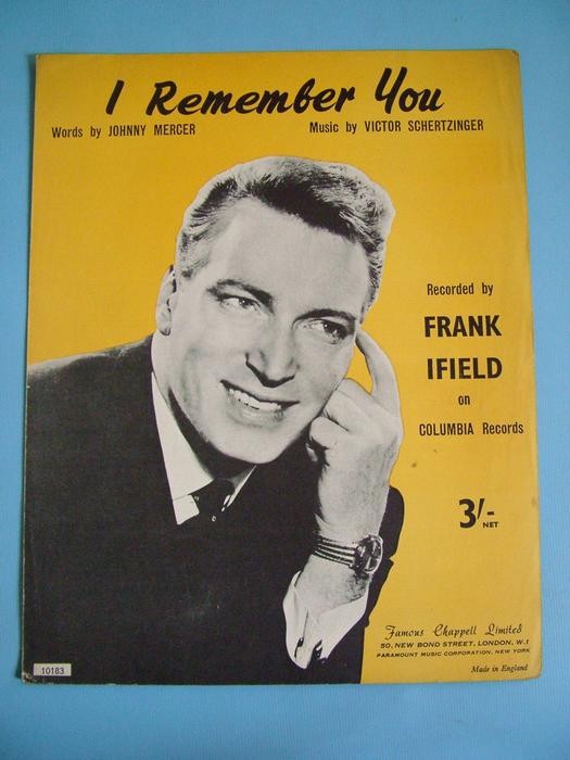 Frank Ifield I Remember You song sheet music andwords Mercer andSchertzinger