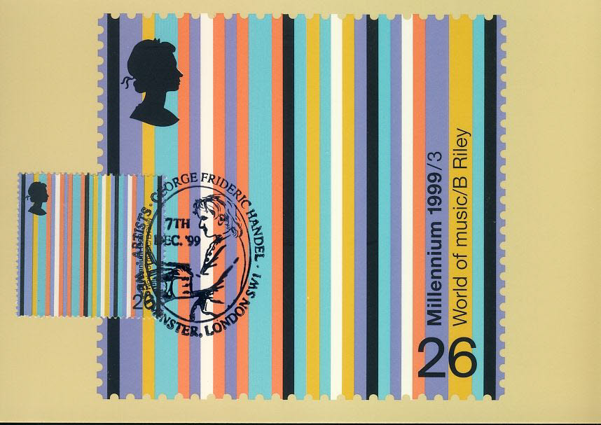 George Frideric Handle Artists music Postcard with special hand stamp Westminster 1999 postmark refE91 Special Hand Stamped Postcard in Very Good Condition – address label on reverse.