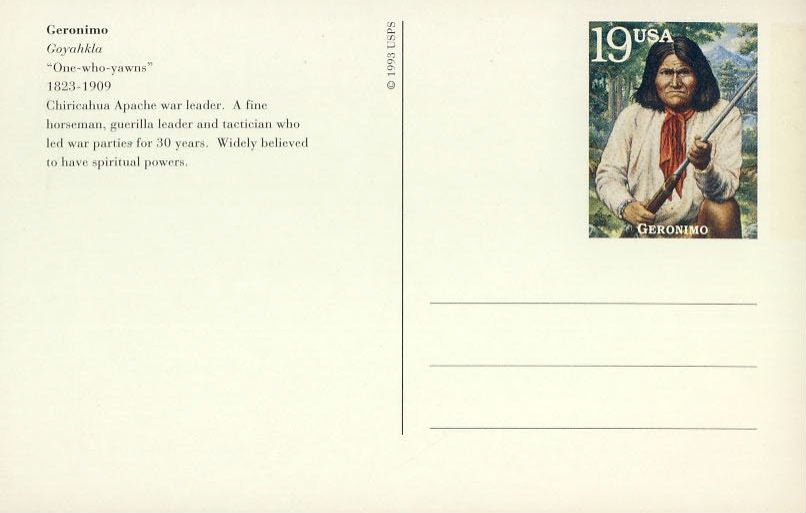 Geronimo Goyahkla Chiricahau Apache war leader 1993 USPS Postcard refUSA P4 Please see large photos and description for details.