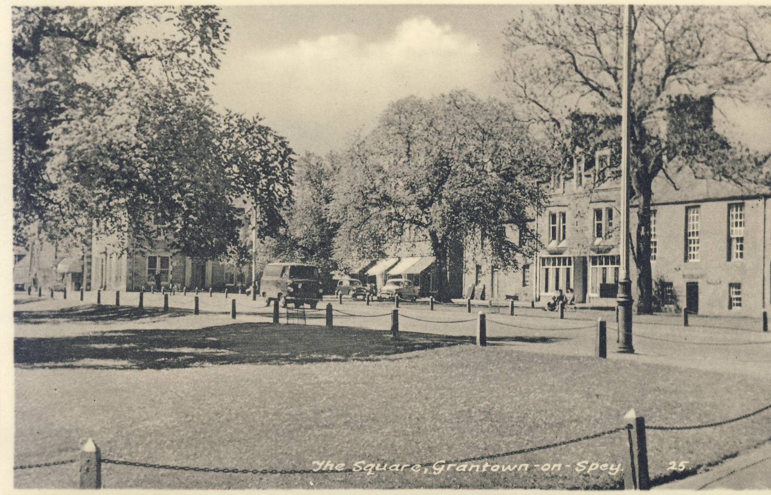 GRANTOWN-ON-SPEY The Square Old Black & White Postcard refP9 M and L National Series Pre-owned unused condition.