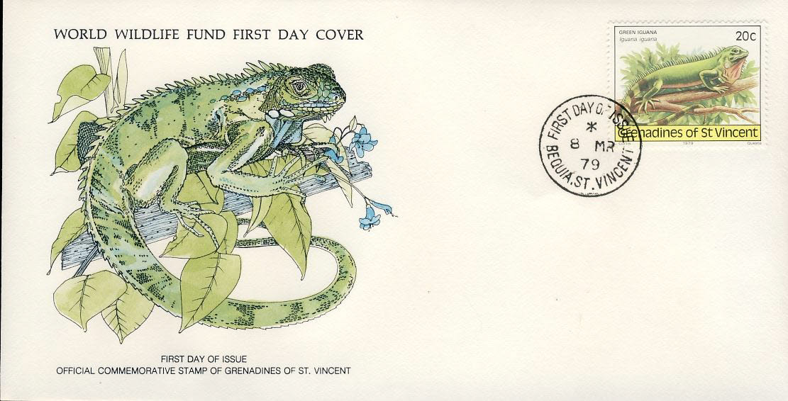 Green Iguana lizard GRENADINES OF ST. VINCENT 1979 Stamp World Wildlife Fund First Day Cover FDC refWWF32