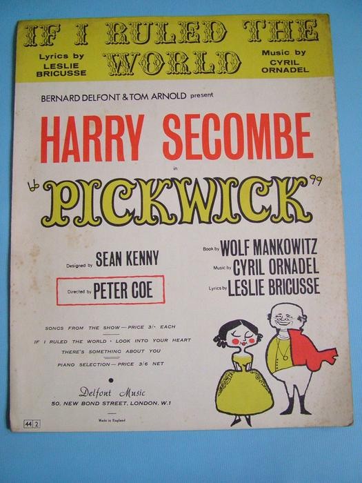 Harry Secombe in Pickwick IF I RULED THE WORLD song sheet music andwords Delfont