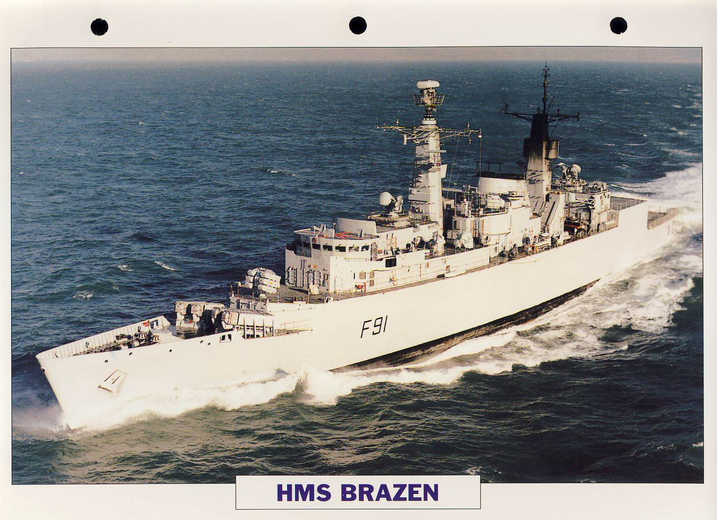 HMS BRAZEN 1980 guided missile frigate Navy Ship Photo Info Card refA3